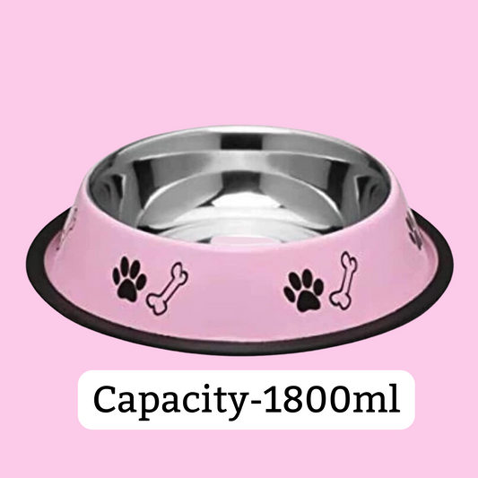Printed Steel Bowl for Pets - 1800ml (Pink)