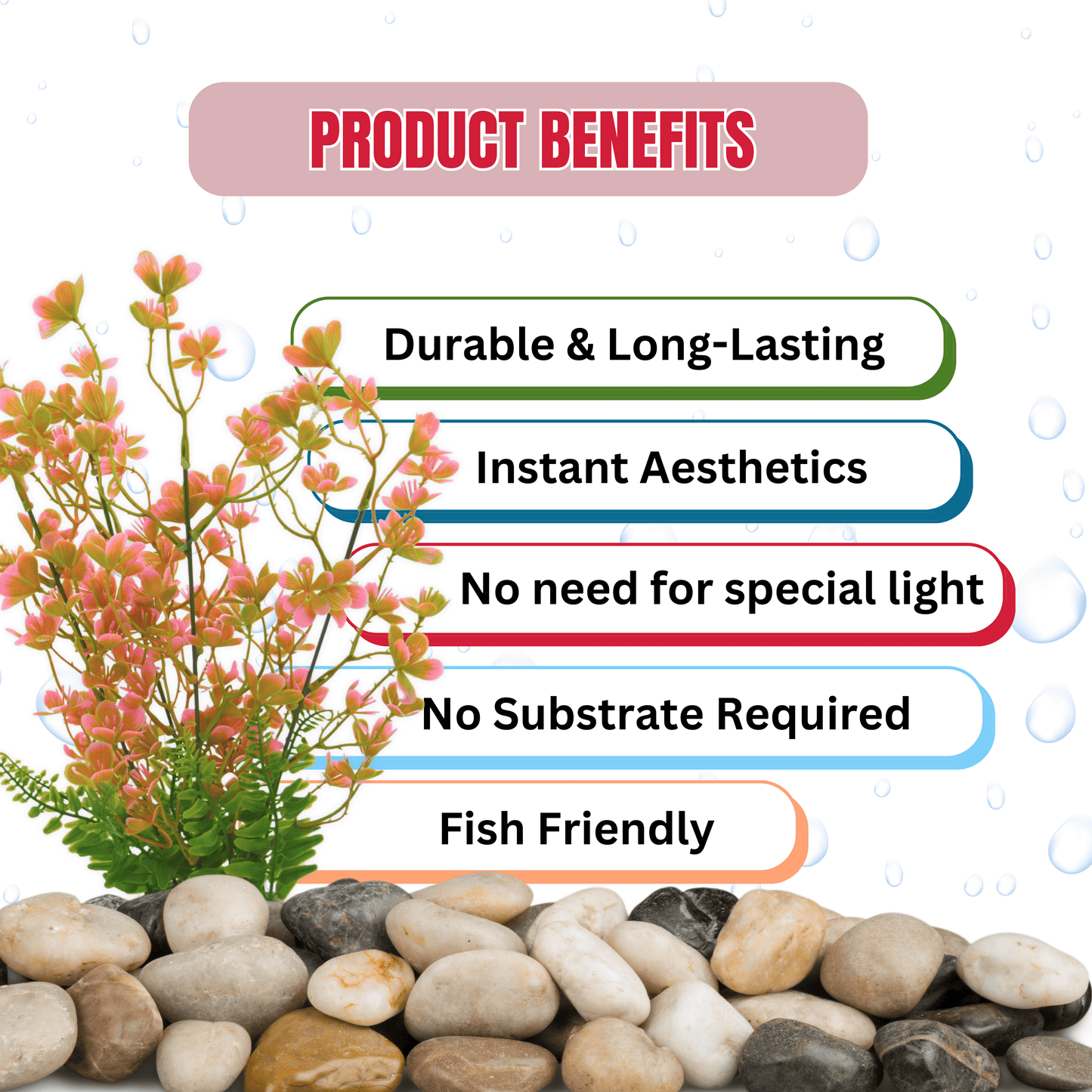 Natural-looking artificial makora plant with a sturdy resin base, perfect for adding colours and beauty to fish tanks, homes, or offices. Easy to install and safe for aquatic life.