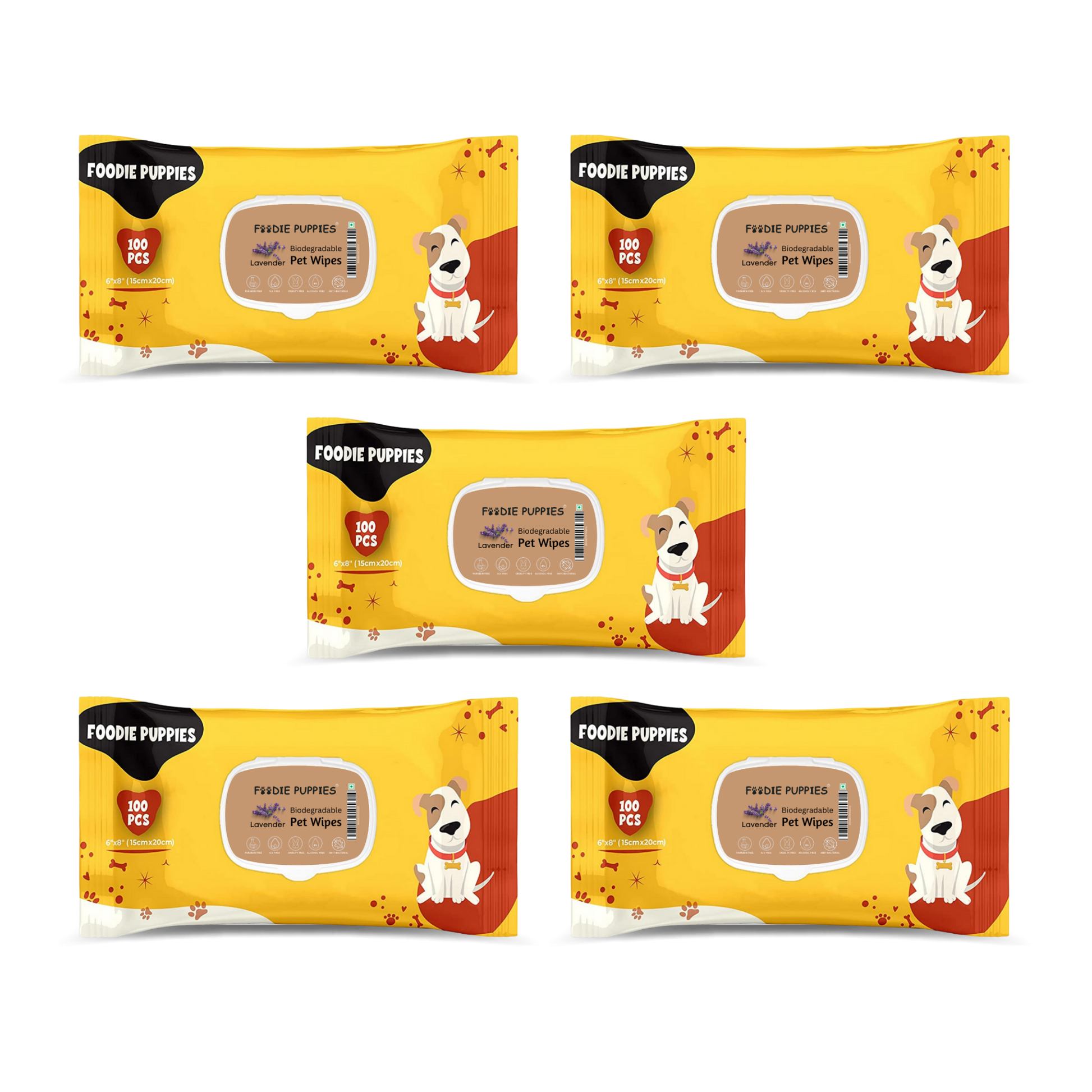 Biodegradable Lavender 500 Pet Wet Wipes for Dogs, Cats, Rabbit & Small Animals