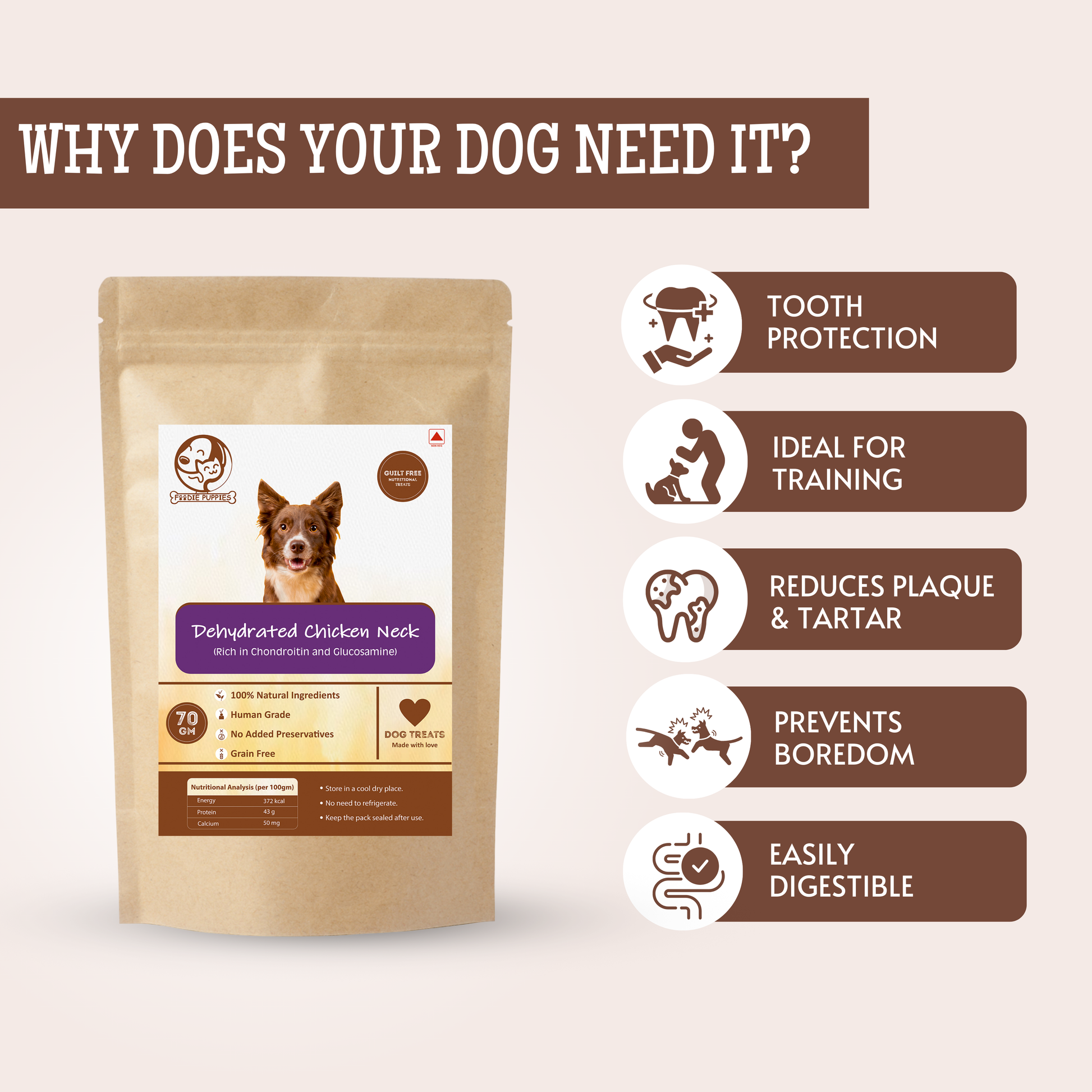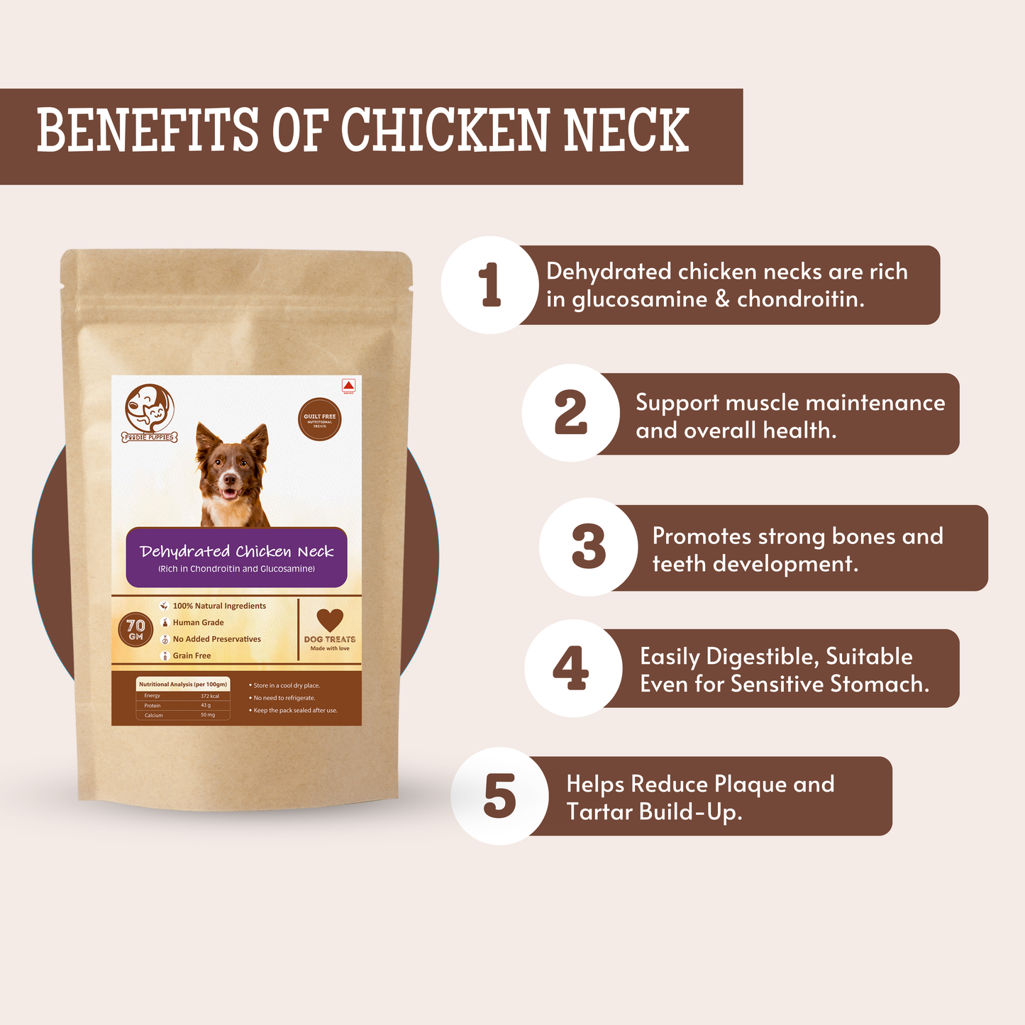 - Highly Digestible: Dehydrated chicken neck support healthy digestion with no artificial preservatives.