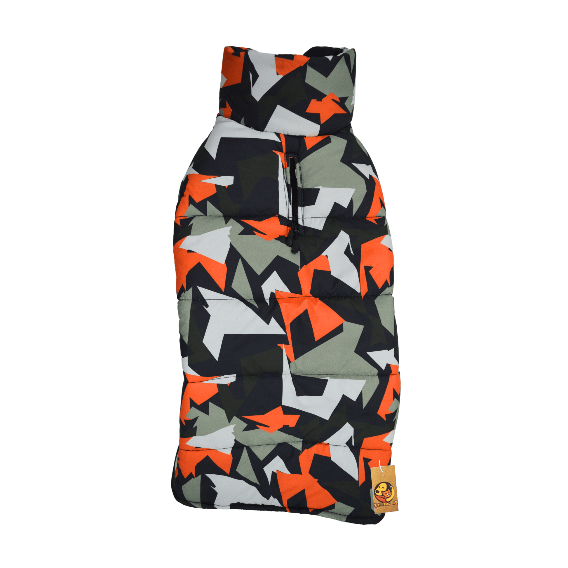 Keep your dog warm and stylish with this water-repellent, nano-printed puffer jacket. Designed with adjustable Velcro straps for a snug fit, it's perfect for outdoor adventures in cold or wet weather.