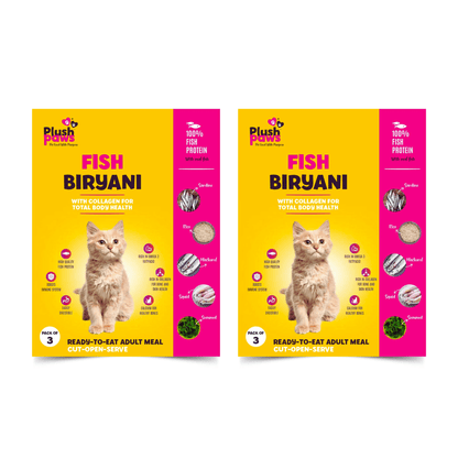 Fish Biryani Cat Meal offers complete nutrition with 100% fish protein, collagen, and essential vitamins to support strong muscles, a healthy immune system, and a shiny coat. Easily digestible and ideal for adult and senior cats.