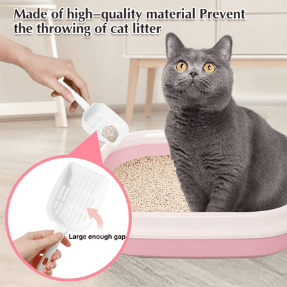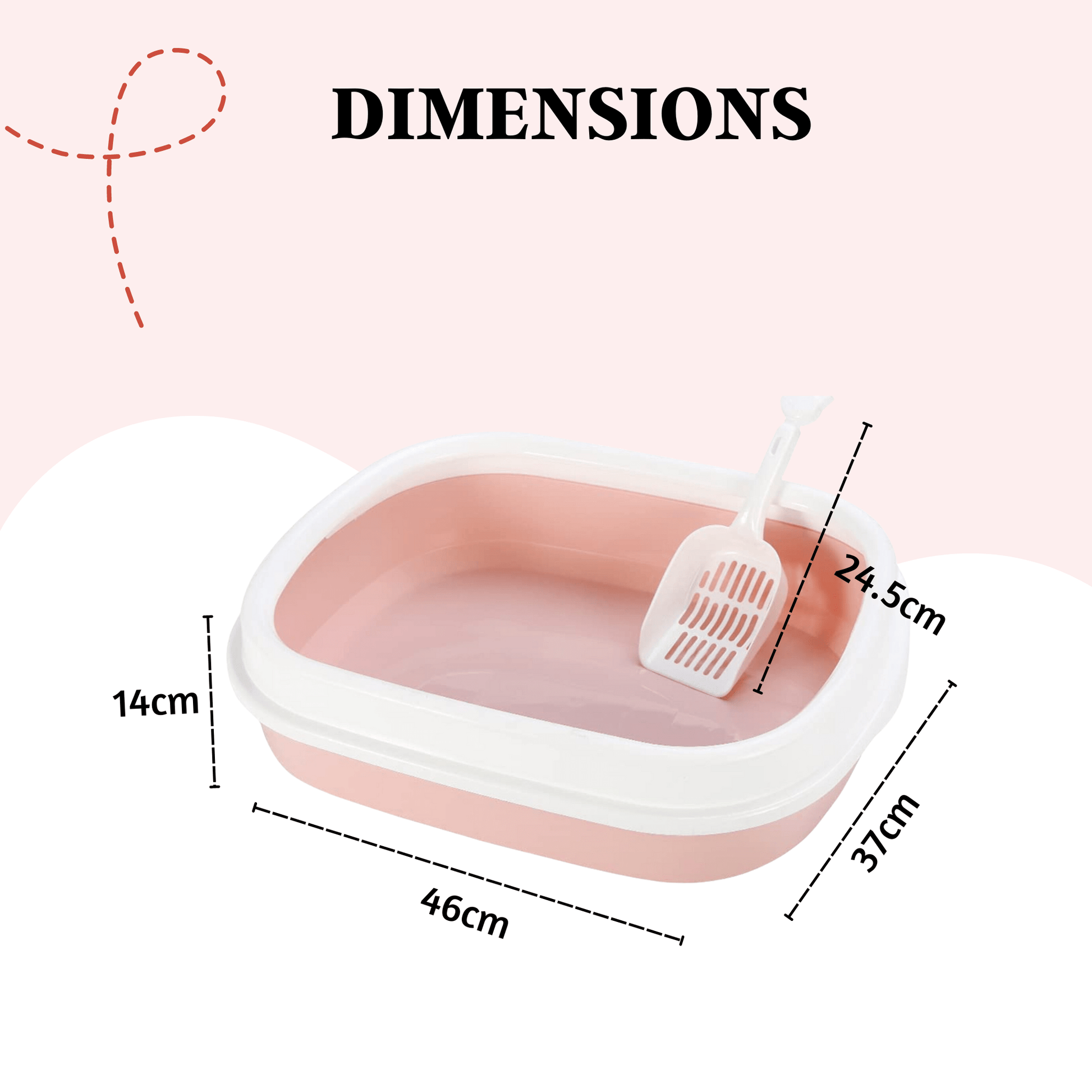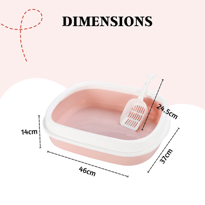 Cat Litter Tray with Rim & Scooper - Peach
