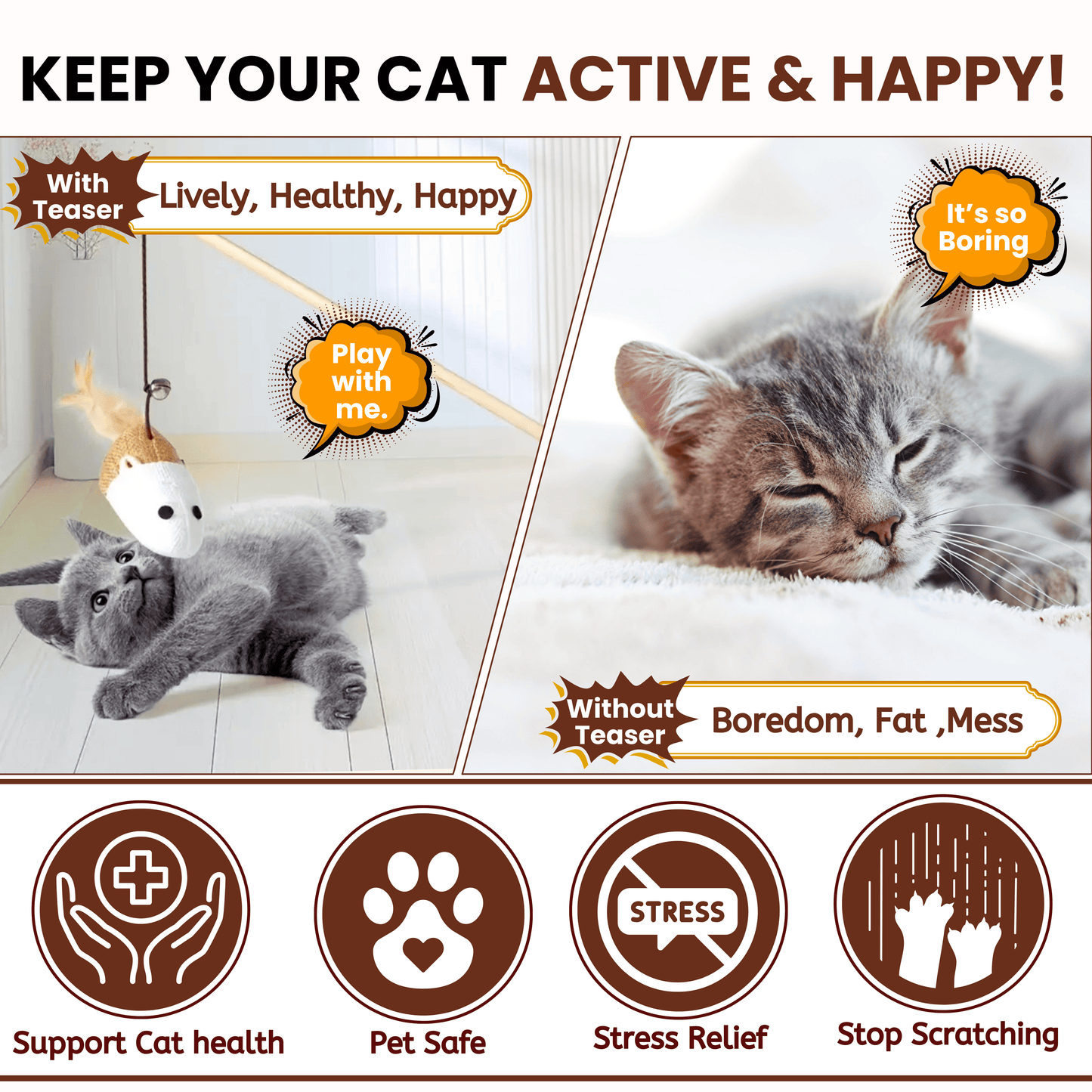 Foodie Puppies' wooden teaser stick helps your cats keep active and exercise more, increasing kitten interest and stimulating cat sense. These toys engage your cats with you and it builds trust and companionship. It is made of 100% Safe, non-toxic and high-quality material. Super cute, light, and nice-looking design.