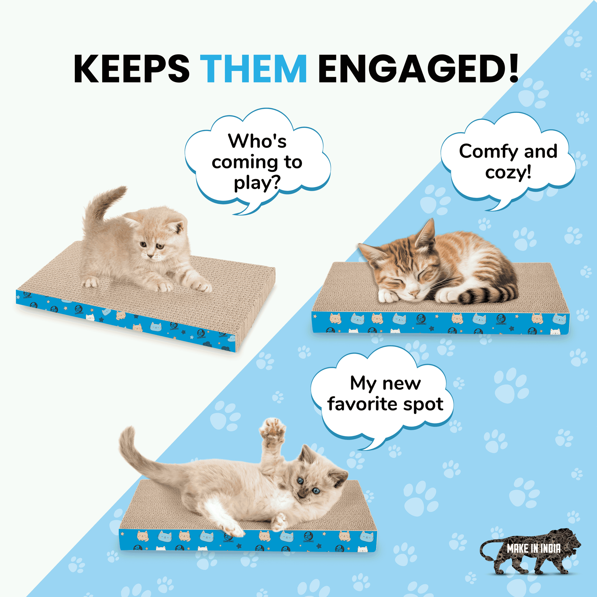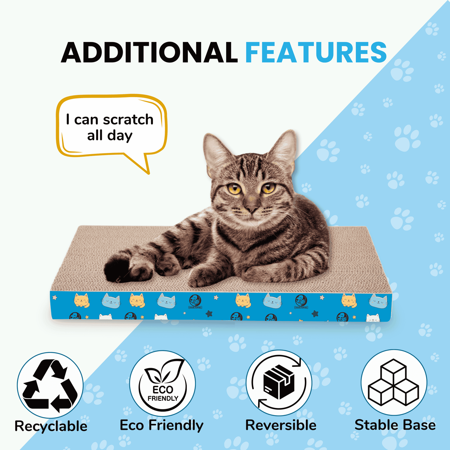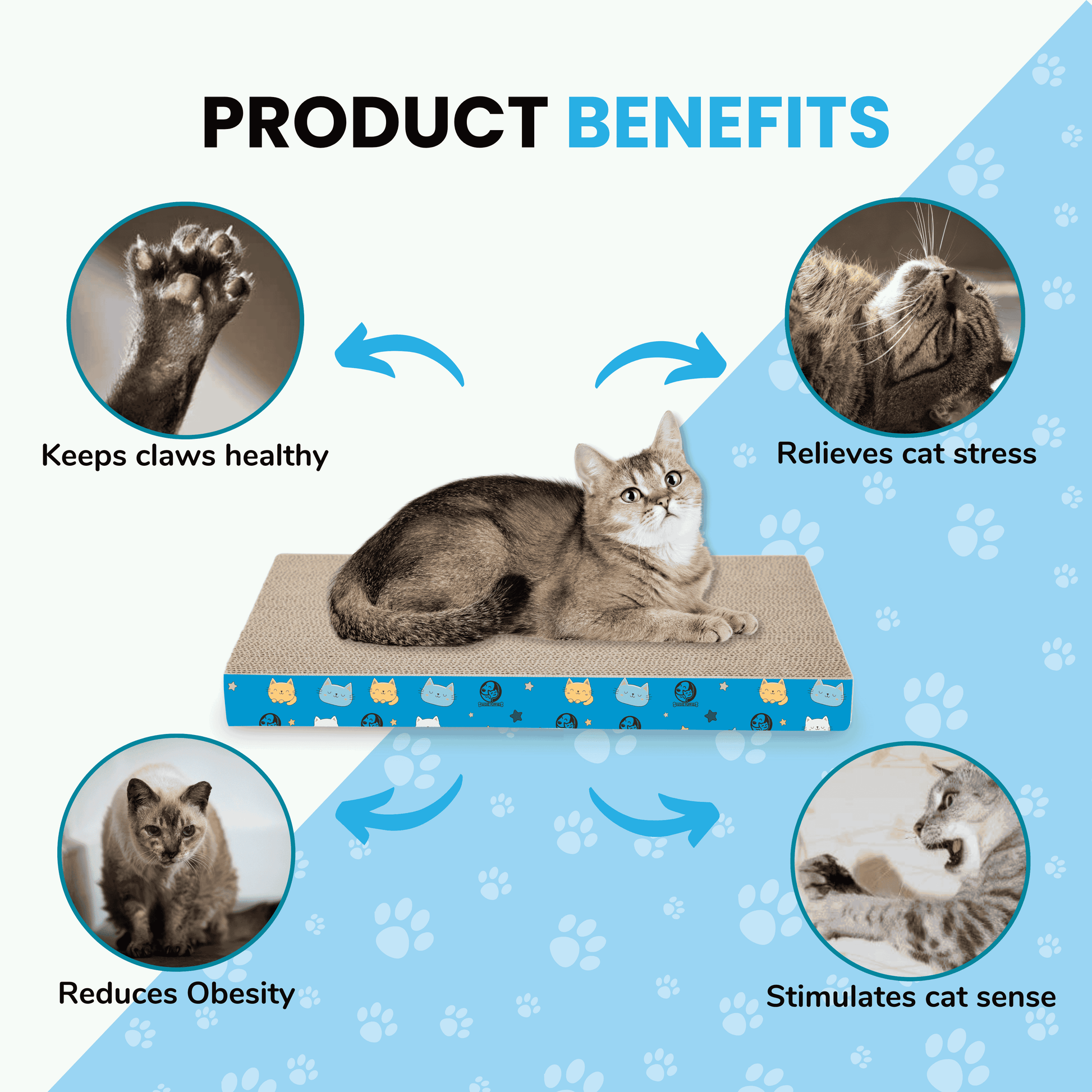 Protect your furniture from being scratched!! Introducing the scratcher with high-density corrugated cardboard and reversible features, it offers greater durability. The corrugated cardboard scratching surface is perfect for cats to keep their nails trimmed and healthy without resorting to sinking their claws into your furniture and carpets around the house.