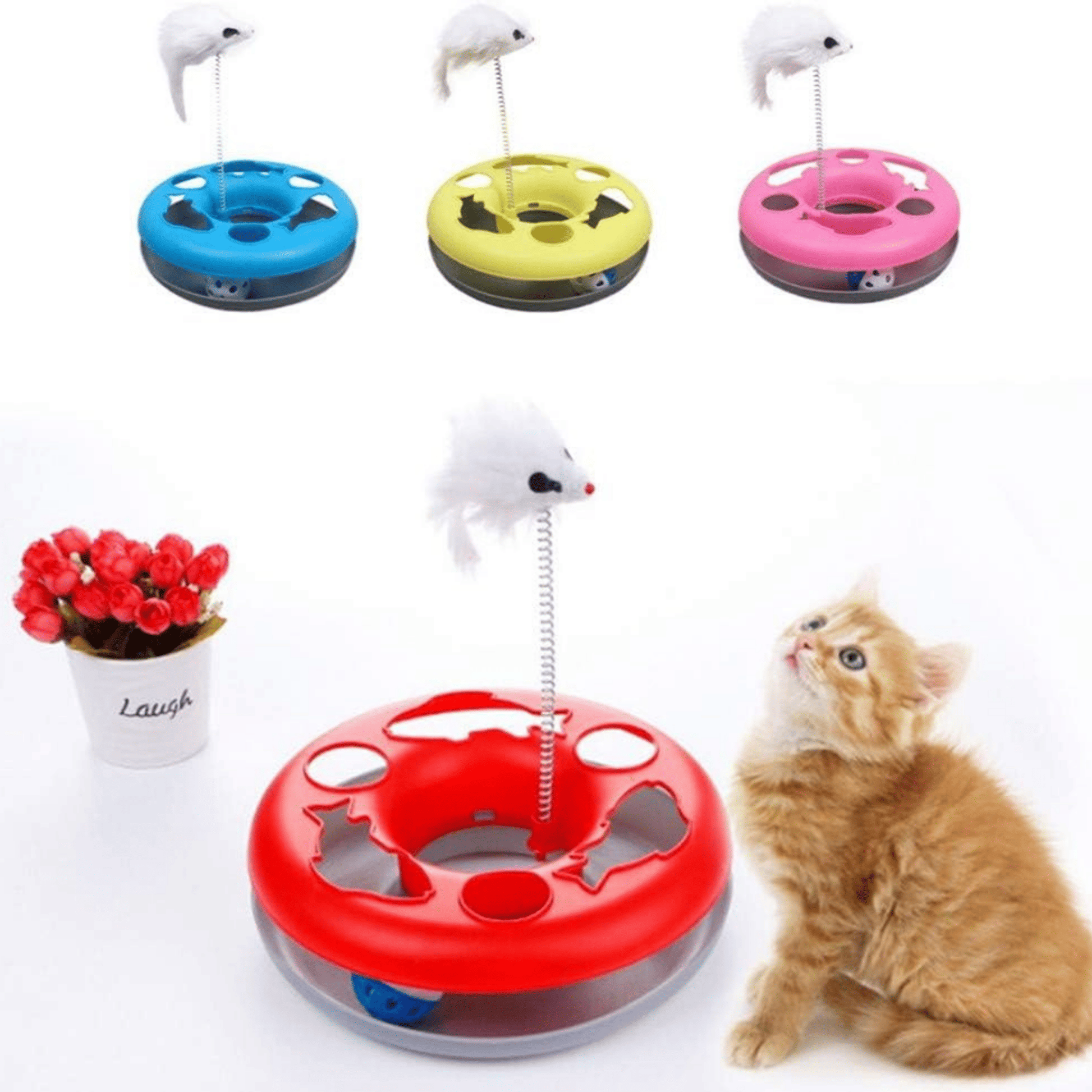 Introducing Foodie Puppies interactive cat toy that allows cats to exercise while chasing and playing, keeping them healthy. The balls can be moved back and forth through the rails to stimulate your cat's hunting instinct. The excitement of hearing the sound of the bells rolling along, and even the feather mouse teaser on top! (Color May Vary)