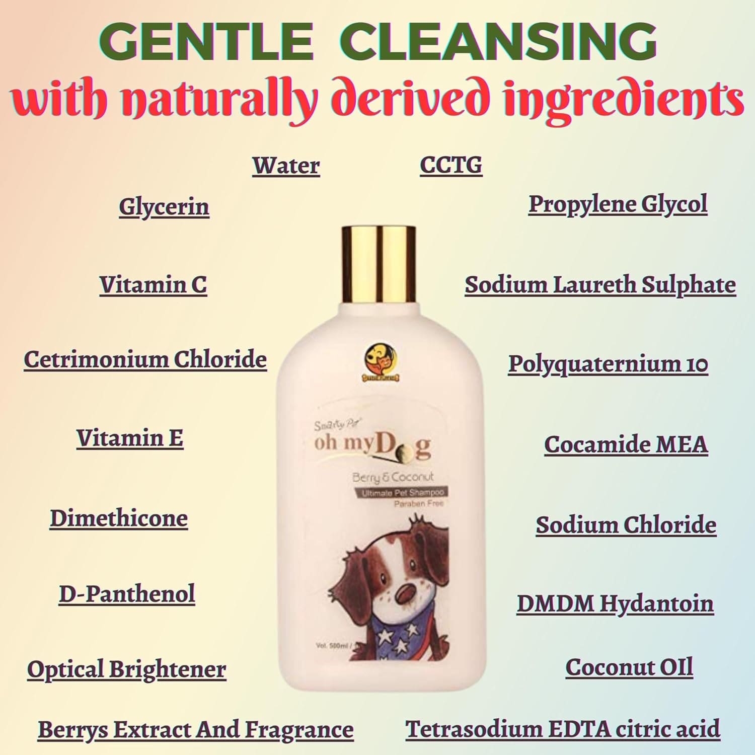 Oh My Dog Pet Shampoo for Puppies and Dogs (Berry Coconut, 500ml)