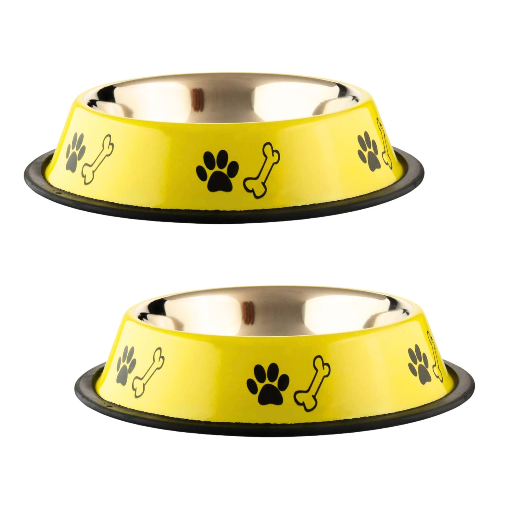Printed Steel Bowl for Pets - 450ml (Yellow), Pack of 2