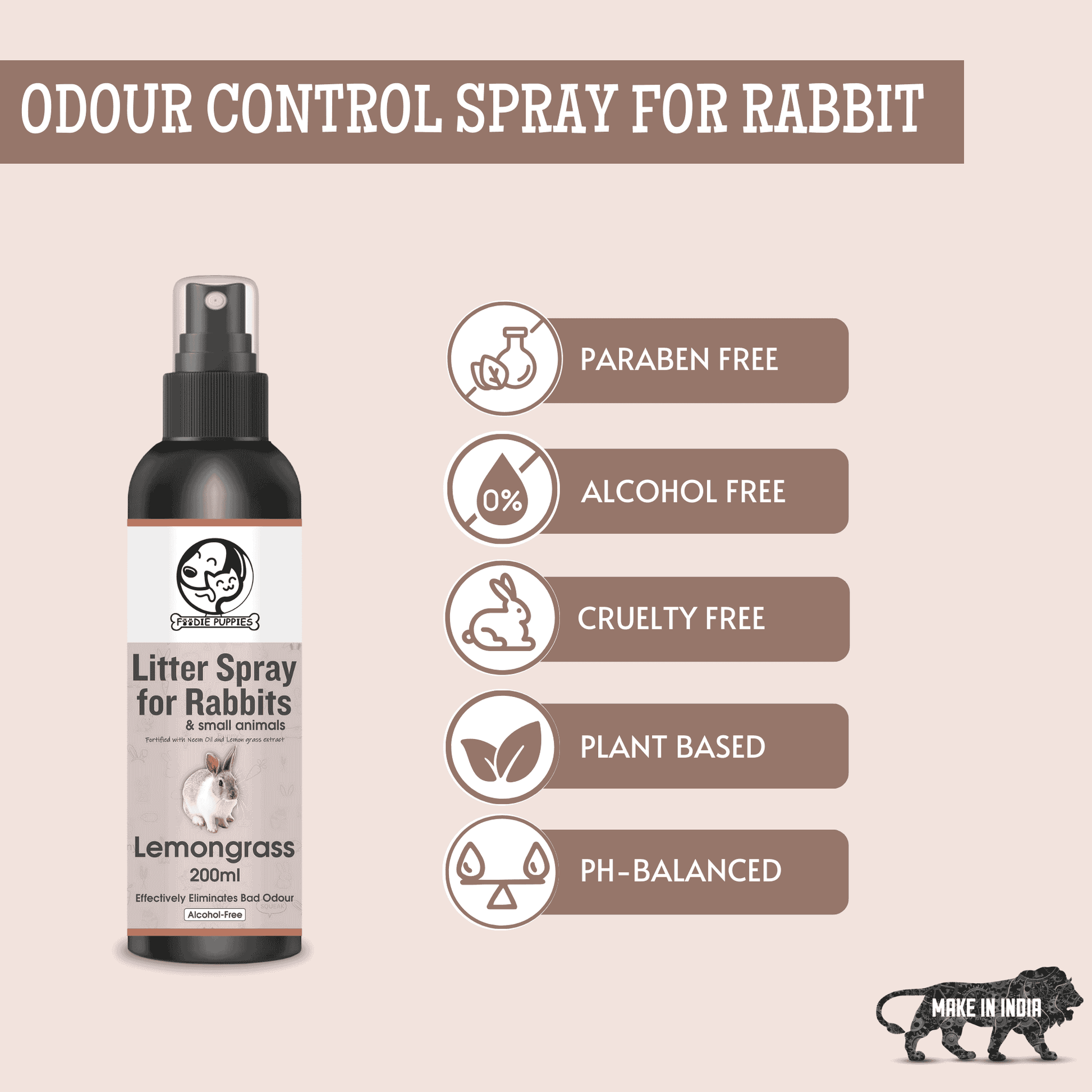 Rabbit Litter Spray - 200 ml | Fortified with Neem Oil and Lemon Grass Extract