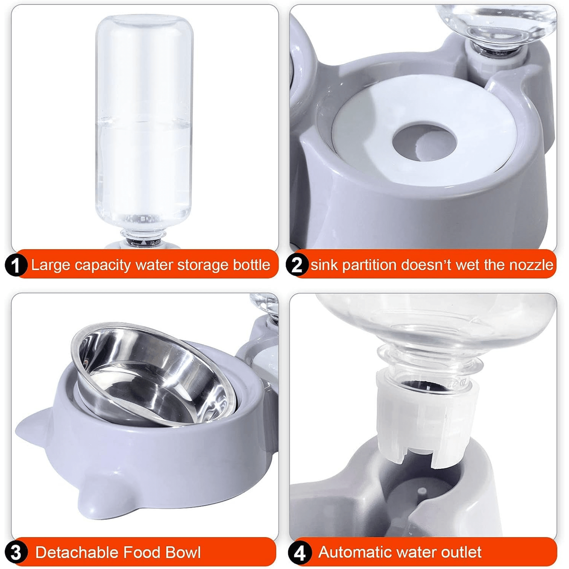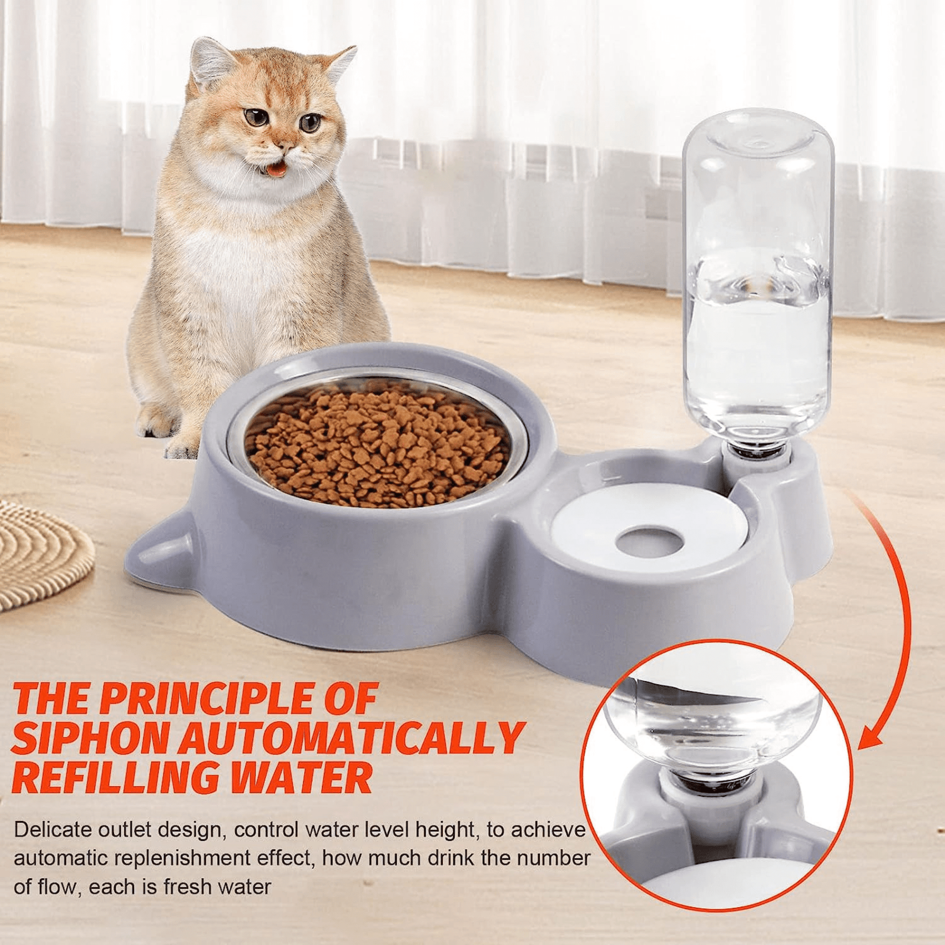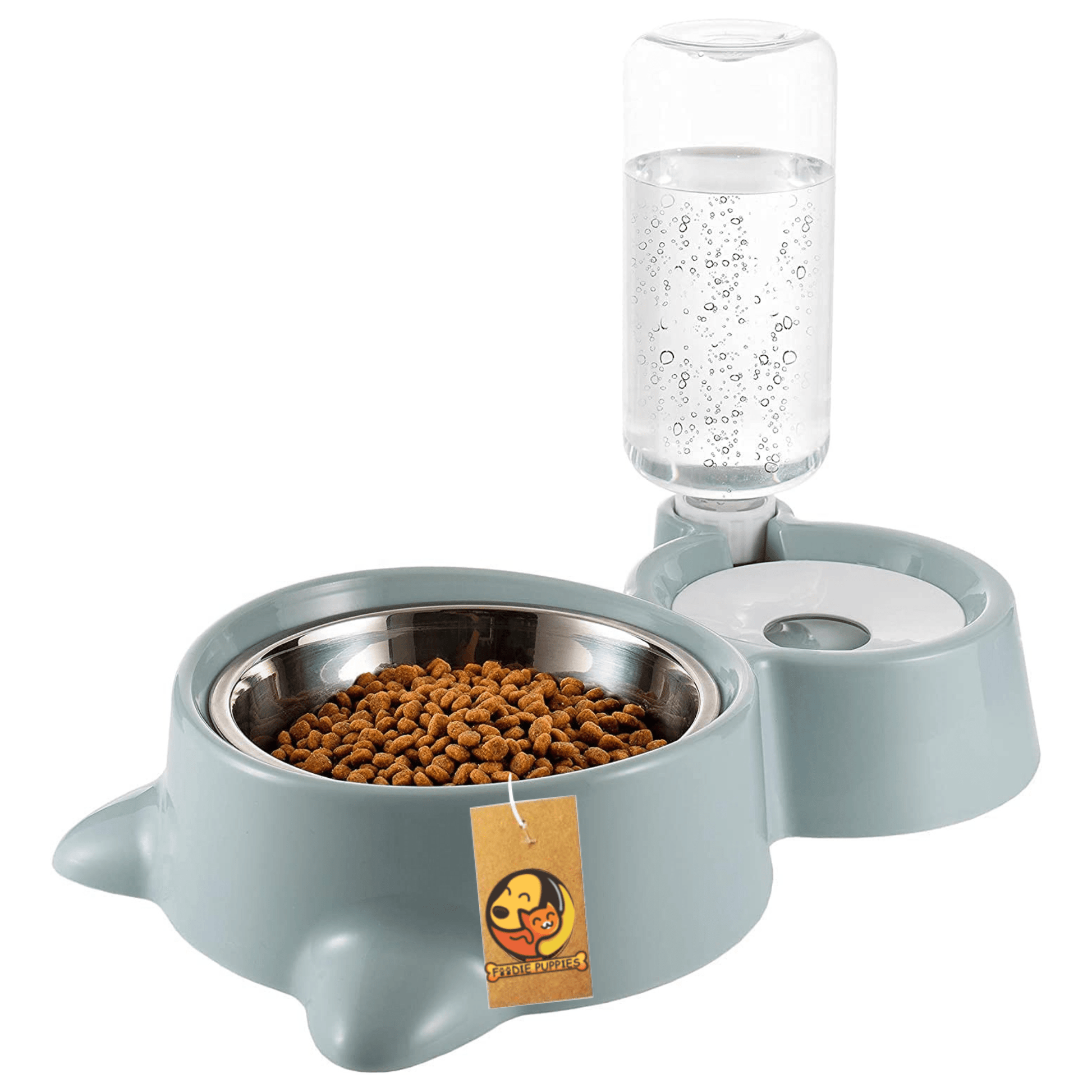 Foodie Puppies automatic water dispenser 2-in-1 feeder bowl. One plastic bowl with an automatic water bottle. Easy to install and use make the lid of the bottle down, overturn the filled bottle, put it on the small groove, then press the bottle bottom.