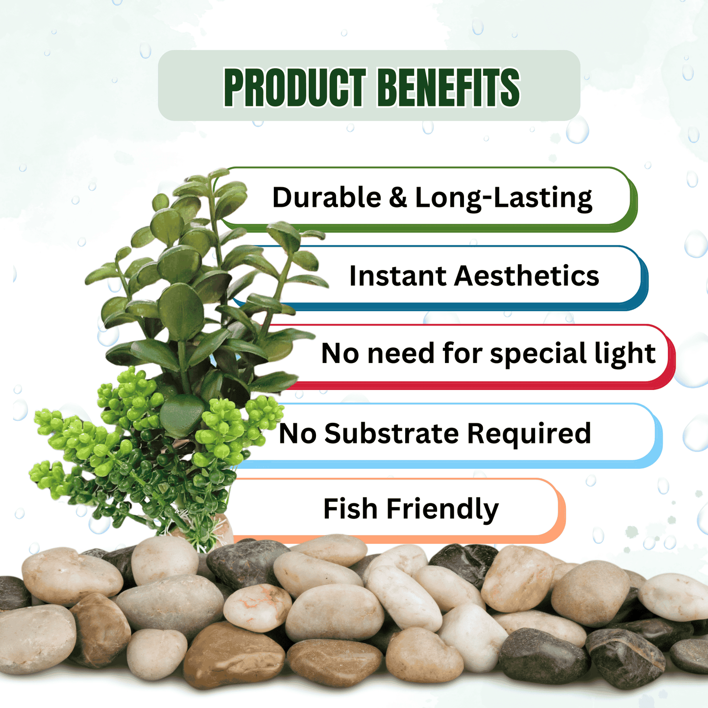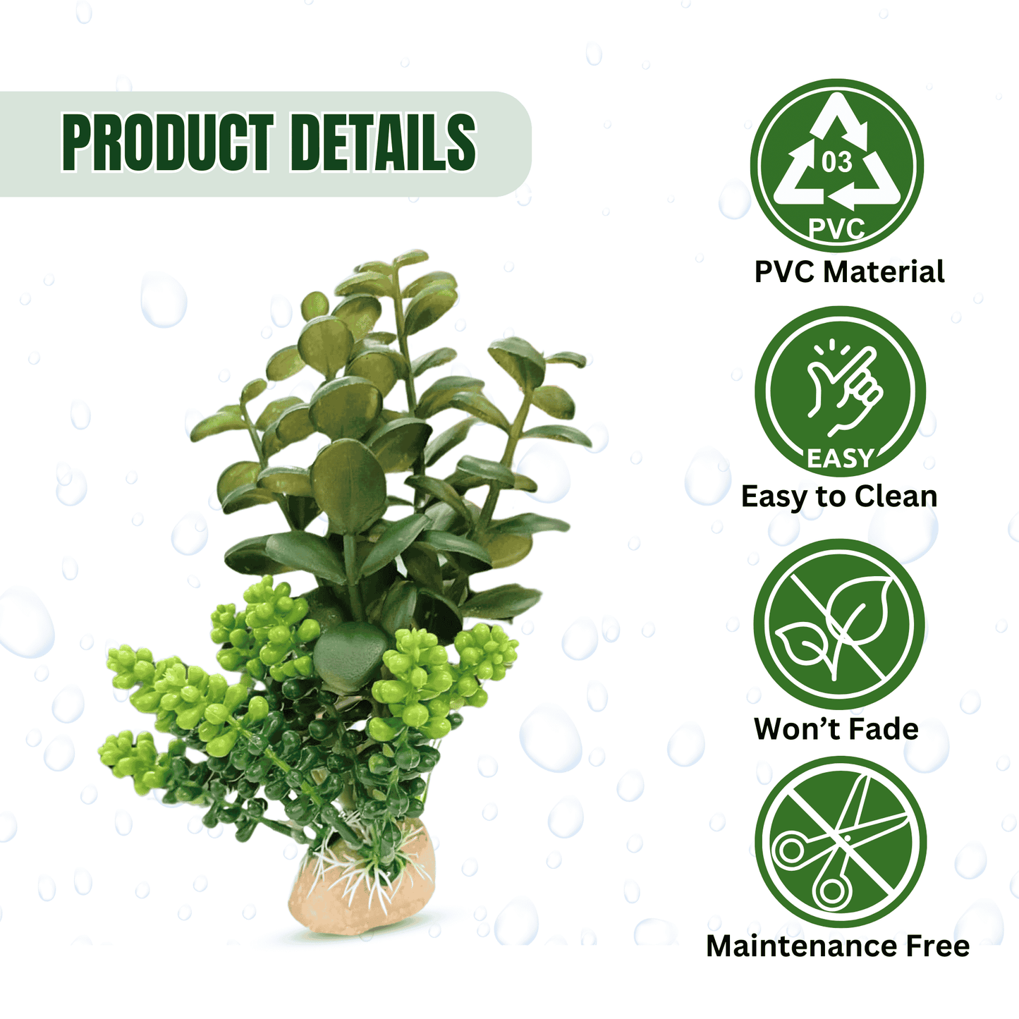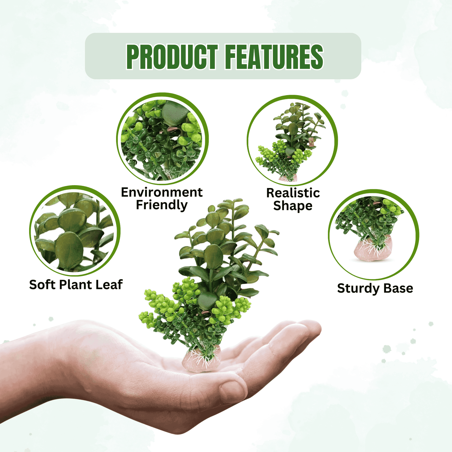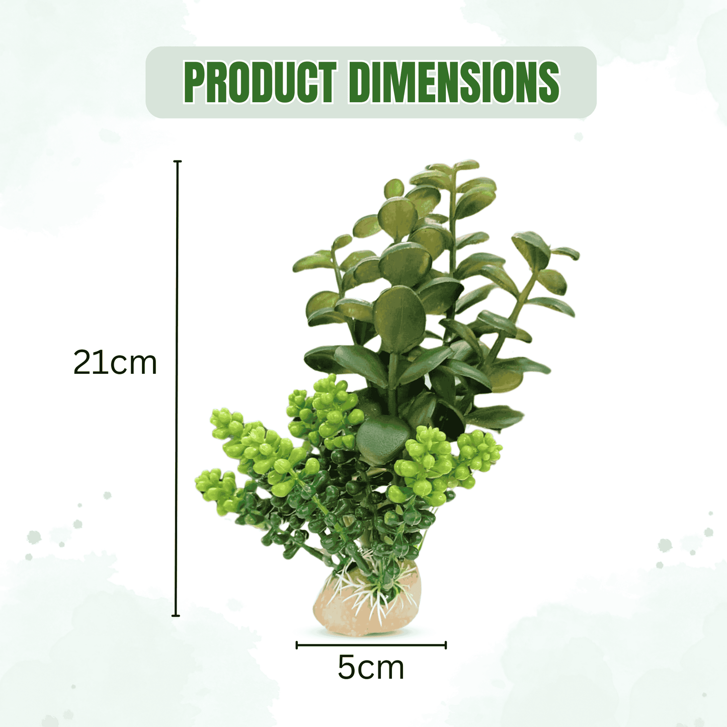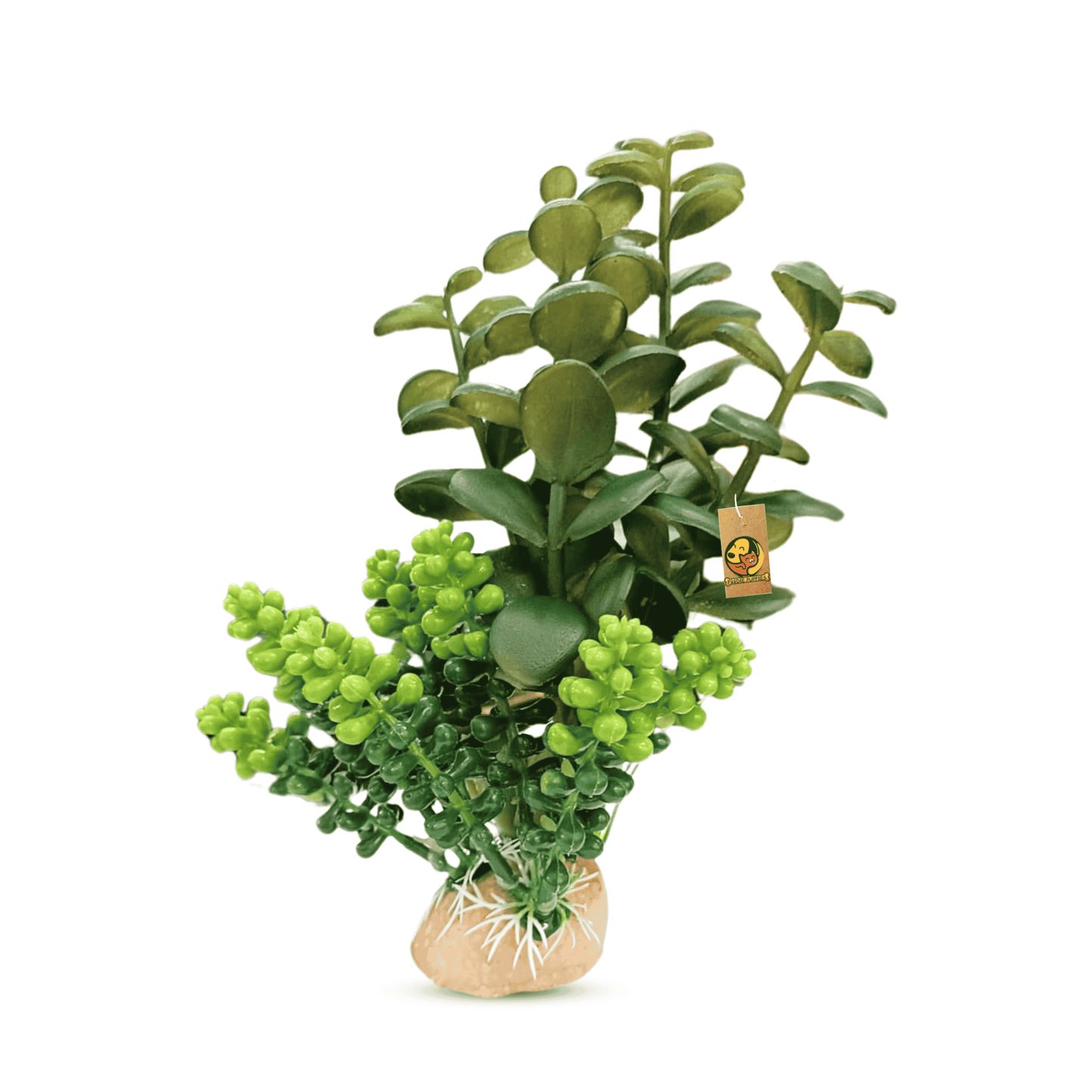 Natural-looking artificial jada plant with a sturdy resin base, perfect for adding color and beauty to fish tanks, homes, or offices. Easy to install and safe for aquatic life.