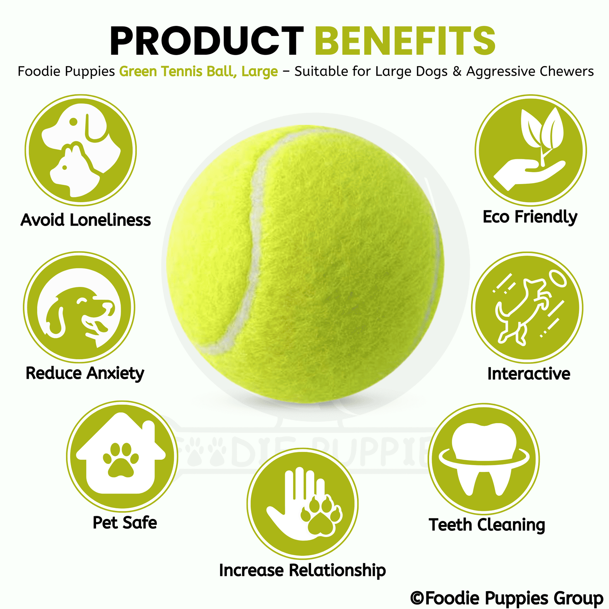 The Foodie Puppies Dog Tennis Ball (Neo Green, 13cm) is built for strong chewers and energetic fetch play. Made from safe, durable materials, it supports active outdoor exercise. Ideal for medium to large dogs. A heavy-duty, pet-safe tennis ball designed for chewing and fetch. Encourages active outdoor play and exercise. Suitable for medium and large dogs.