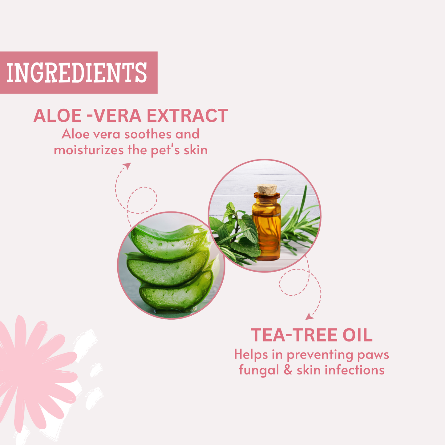 - Nourishing Ingredients: Enriched with tea tree oil and aloe vera to sooth and hydrate sensitive paws.