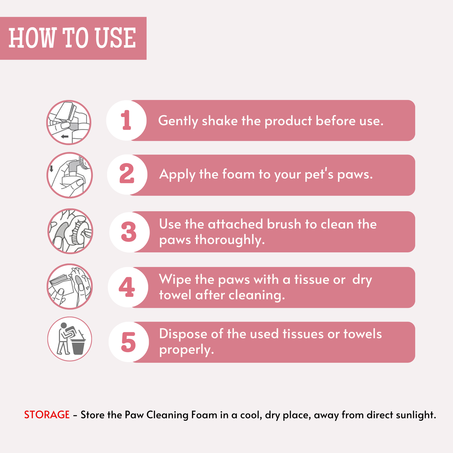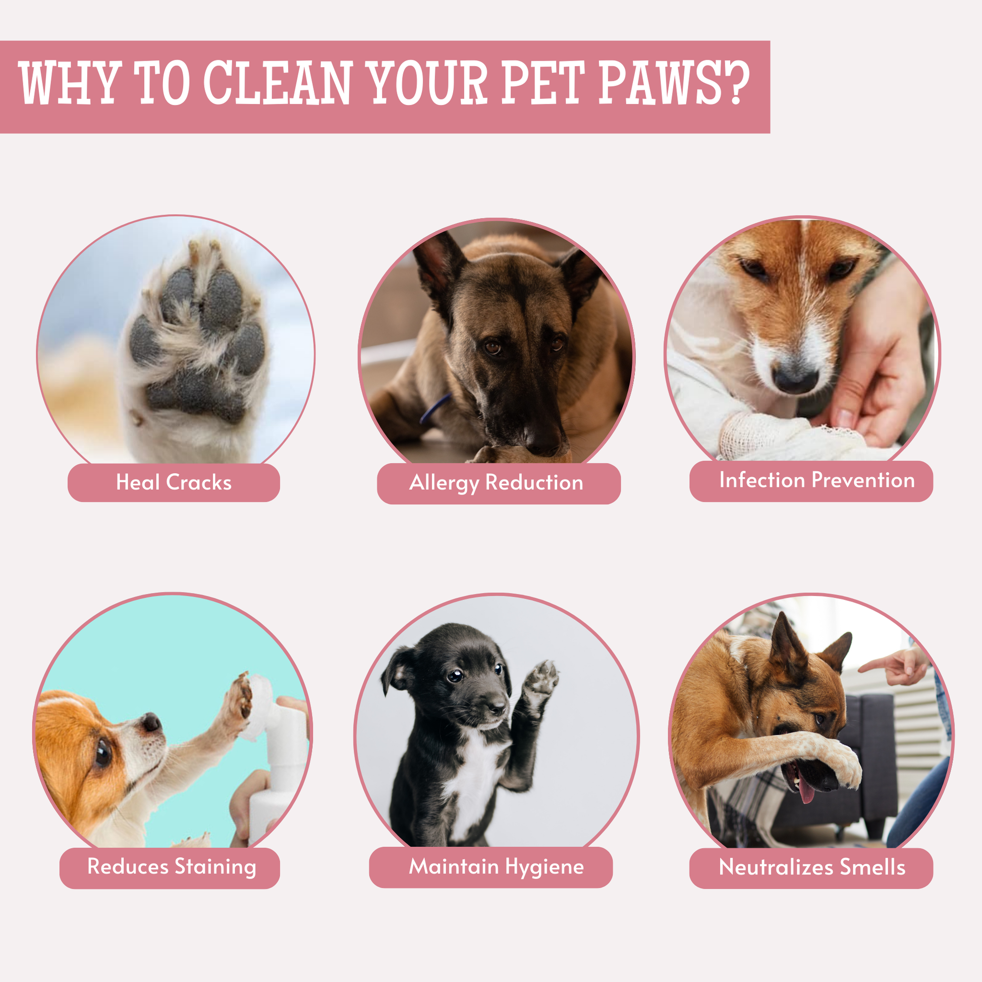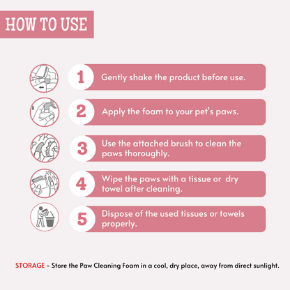 Pet Paw Cleaning Foam to Keep your dog's paws clean and healthy with our eco-friendly foam. The soothing strawberry scent and enriching tea tree oil and aloe vera promote a calming atmosphere while nourishing and hydrating sensitive paw pads. Effortlessly removes dirt, mud, and grime, making it perfect for daily use or after outdoor adventures. Your furry friend's paws will stay clean, refreshed, and well cared for.